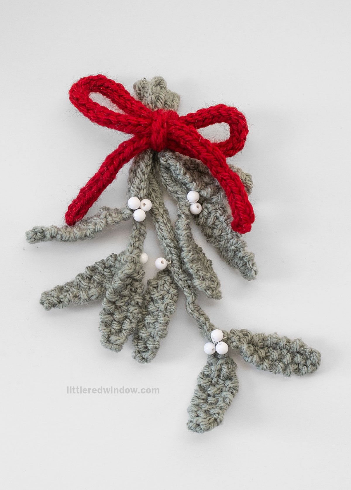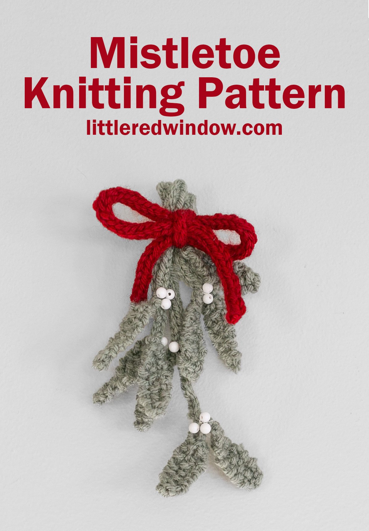 The Sprig of Mistletoe knitting pattern is a perfect Christmas knit! This fun and easy winter knitting pattern will the perfect pop of holiday cheer and it's easy and fun to knit as well! This pattern includes instructions to knit one sprig of mistletoe with 3 branches of varying length that are tied together will a pretty red bow. Hang in your home and be merry!